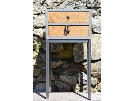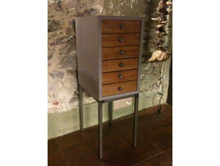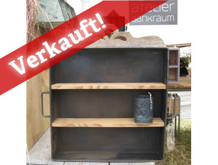 Schubladen antik ca. 70jährig, Hülle aus grauem MDF. Gestell Stahl roh. Grösse 90/35/45cm