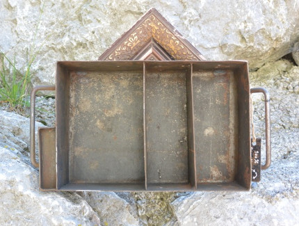 Zum verschrotten verurteilte Ofentüre wurde in einen MDF Körper integriert. Grösse 73/25/24cm. Noch erhältlich.